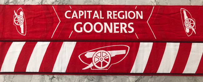 Get your scarf to show off your Arsenal pride! Only $20 each-- can be delivered at an upcoming game at Wolff's or possibly dropped off at your house if within 10 min drive of Latham.